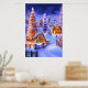 Village de pain d'épices dans la montagne enneigée, neige sur le toit, arbre dans le village, un art unique cool dans un paysage hivernal avec des étoiles dans le ciel. C'est un art généré par l'IA.