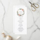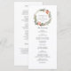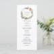 Notre élégant programme de mariage présente les détails de votre cérémonie dans une écriture grise élégante, encadrée en haut par une couronne aquarelle de fleurs d'hiver, de baies et de pommes de pin.