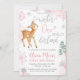 Fêtez le 1er anniversaire de votre petit avec ces invitations toujours adorables à thème Winter Onederland ! Cette décoration colorée présente des flocons de neige pastel rose et argent, des cerfs et des pins.