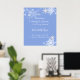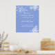 Elégant arrière - plan bleu avec de jolis flocons de neige et des étoiles étincelantes. Affiche parfaite pour votre mariage Winter Wonderland. Sélectionnez une taille plus petite à placer sur chaque table. Créez votre propre panneau de bienvenue pour votre famille et vos amis en personnalisant le texte et la police. Ajoutez un peu de paillettes et de colle en dabant de la colle blanche et saupoudrez de parties scintillant. La couleur Arrière - plan peut être changée en n'importe quelle couleur.