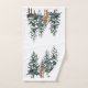 Beau Noël, Wonderland serviette sertie de pins enneigés, mignonette fawn, oiseaux, écureuils et vieux panneau en bois qui dit "Joyeux Noël"