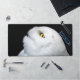 Portrait photo d'une belle Chouette blanche avec les yeux jaunes sur l'arrière - plan noir.