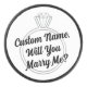 Faites votre demande en mariage de manière audacieuse et inoubliable avec ce palet de hockey personnalisable avec un design de bague de fiançailles et un texte personnalisé. Le message par défaut est « Voulez-vous m'épouser ? », mais tout le texte peut être modifié, ce qui en fait une idée de proposition de mariage créative pour les amateurs de hockey et les amateurs de sport.