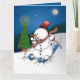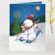 Échappe-toi des cartes de Noël ordinaires et surprends tes amis et ta famille avec ma carte de vœux unique, pleine de plaisir hivernal et d'une touche d'humour. Cette carte exclusive montre un bonhomme de neige joyeux sur des skis dans un style cartoon, parfait pour un message de Noël ludique et festif. L'intérieur bleu de la carte la rend encore plus remarquable.