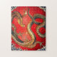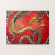 Hokusai Gold Dragon japonais puzzle. Ukiyo-e produit pendant la période Edo. Les créatures mythologiques étaient un thème fréquent de l’art d’Hokusai, ce dragon d’or est l’une de ses oeuvres mythologiques les plus expressives. Le dragon est assis sur un arrière - plan rouge entouré de vagues bleues sauvages. Un grand cadeau pour les fans de Katsushika Hokusai, la mythologie japonaise, les dragons japonais et l'art japonais.