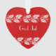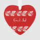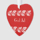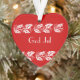 Design festif en rouge et blanc avec des hollies blanches. Il est livré avec le texte "Dieu juil" - il signifie Joyeux Noël en suédois et dans d'autres langues scandinaves ainsi .Vous pouvez le customiser maintenant avec votre propre texte. Ornement acrylique en forme de coeur. Conception avant et arrière.