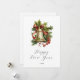 Bonne carte du Nouvel An avec une décoration de Noël avec des saints, des baies et une cloche de Noël. Personnalisez facilement cette élégante carte du Joyeux Nouvel An avec votre nom de famille, l'année et le texte.