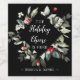 Le troisième design présente un cadre verdoyant avec une petite baie vitrée rouge vif et un texte écrit à la main Holiday Cheers sur l'élégant arrière - plan noir. Faites plaisir à vos proches avec une bouteille de vin élégamment décorée.
