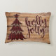 Décorez votre maison pour les vacances avec ce coussin de Noël rustique qui a un arrière - plan de bois brun sur elle avec un Buffalo rouge et noir plaqué sapin de Noël avec une couture numérique blanche autour des bords. Il y a des plaids rouges et noirs sur l'arbre qui dit "holly jolly".