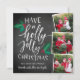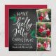 Carte photo de vacances rustique et capricieux dans une forme unique carré dispose de trois photos dans une mise en page collage. "Ayez un Noël saint et joyeux" apparaît à gauche dans la typographie en lettres blanches à la main sur un arrière - plan de tableau noir accentué de feuilles et baies rouges et verts. Personnalisez avec vos noms en-dessous.