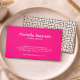 Vintage hollywood glamor bloc motif en brun & blanc couvre l'arrière de ce design carte de visite. Mettez à jour la carte rose-chaud avant avec votre nom et vos informations professionnelles. © 1201AM DESIGNS