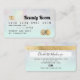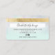 Un élégant carte de visite moderne et élégant de style beauté Hair et maquillage artiste de style carte de crédit avec une typographie de police script moderne sur une holographie chic nacre iriridescente nacre holographique à l'ombre irisée sur pastel turquoise et or de mousse métallique glam arrière - plan branché. tout le texte est personnalisable, ajoutez vos médias sociaux. Avec une fausse bande d'or. Ajoutez votre logo, votre monogramme et votre code QR.