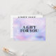 Améliorez votre expérience de don grâce à nos certificats-cadeaux personnalisables. Réalisées sur un arrière - plan holographique imitation et ornées d'un texte noir et gras qui dit "Un cadeau pour vous", ces certificats servent de toile pour votre touche personnelle. Customisez le front avec votre propre message sincère, faisant de chaque certificat-cadeau un geste vraiment unique. Mais ça ne s'arrête pas là. Retournez-le, et vous trouverez une présentation élégante et professionnelle. Votre nom ou nom d'entreprise est élégamment présenté dans une tapisserie noire audacieuse, ce qui ouvre la voie à un moment inoubliable de cadeaux. En dessous, vous trouverez des champs pratiques pour "To", "From" et "Montant", assurant une touche complète et professionnelle à votre cadeau réfléchi. Offrez le cadeau de choix et faites chaque occasion spéciale avec nos certificats-cadeaux personnalisables. Parfait pour les boutiques, les magasins en ligne, les salons de beauté, les salons de clous, les coiffeurs, et plus encore! Commencez à personnaliser la vôtre aujourd'hui ! Conception par 1201AM Design Studio | www.1201am.com