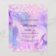 Une douce fille et féminine 16 invitation. Devant : Un arrière - plan de couleur holographique en violet, rose. Décoré de confettis rose vif. Personnalisez et ajoutez un nom et des détails du parti. Le nom est écrit avec un script de style écrit à la main, des lettres de couleur violette. 1 feuille = 1 invite imprimé bord à bord.
