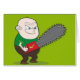 C'est une illustration de bande dessinée d'un homme audacieux plus âgé qui regarde plutôt fâché sa tronçonneuse. Espérons-le prévoit seulement sur ne réduire un arbre et rien plus mauvais !
