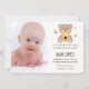 Annonces de naissance de l'ours en peluche avec un petit ours sucré se serrant dans ses bras et léchant une ruche en nid d'abeilles entourée de bourdons. Arrière - plan à pois blanc et jaune. La nouvelle maman et papa d'abeilles adoreront annoncer l'arrivée de leur bébé garçon et conserveront leur joie de le faire! Ajoutez jusqu'à 5 photos à ces annonces car il est trop difficile de choisir une seule photo de votre petit ours au miel. Oeuvre © Chrissy H. Studios, LLC. Tous droits réservés.