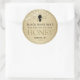 Arrière - plan en nid d'abeille métallique ciselé avec bordure stylisée et pointillée. Texte noir et or sur arrière - plan or métallique.