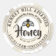 "Abeille à vitre" sur un fond de nid d'abeille avec le mot "miel" écrit en gras, script accrocheur. Votre nom et votre description du miel sont imprimés dans une police de caractères légèrement en détresse (non commerciale).