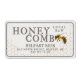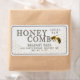 Étiquette attrayant pour nid d'abeille en plastique nid d'abeilles. "Honeypeb" imprimé en marron avec une police de marché à l'ancienne et une ombre de goutte plus foncée pour lui donner un look émaillé légèrement vintage. Personnalisez avec votre nom, adresse et poids net du produit. Design de nid d'abeille irisé jaune et or en arrière - plan, avec son propre abeille réaliste. Bordure vintage dans un motif en diamant sombre.
