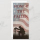 Honore les morts avec un dernier salut. En l'honneur de nos membres déchus des forces armées. Le soldat s'agenouille devant la tombe de son camarade déchu. Dans l'arrière - plan le drapeau des Etats-Unis.