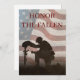 Honore les morts avec un dernier salut. En l'honneur de nos membres déchus des forces armées. Le soldat s'agenouille devant la tombe de son camarade déchu. Dans l'arrière - plan le drapeau des Etats-Unis.
