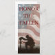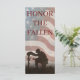 Honorez les morts avec une dernière salutation. En l'honneur de nos membres tombés des forces armées. Un soldat s'agenouille devant la tombe de son camarade tombé au combat. En arrière-plan, le drapeau des États-Unis.