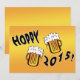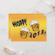 Hoppy 2015 ! - Deux tasses à bière débordantes avec le texte Hoppy 2015 - une façon spirituelle de souhaiter une belle et heureuse année