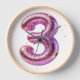 Un ballon rose numéro trois orné de confettis colorés et de parties scintillant pétillante