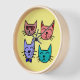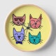 Pour les amoureux de les chats, ce sont quatre drôles, les visages de chat fou ont une couleur différente sur un arrière - plan jaune.