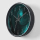 Horloge Abstrait Black Smoke Swirl - Turquoise