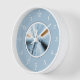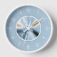 Cette horloge murale ronde présente un art fractal à gradient bleu abstrait sur un arrière - plan bleu glacé et des chiffres blancs.