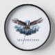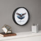Cette horloge murale est montrée dans un design imprimé d'aigle jaune. Customisez cet objet ou achetez comme indiqué. Image sous licence