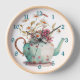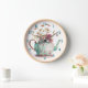Cette horloge murale présente une jolie aquarelle d'une marmite à thé à l'ancienne avec marguerites blanches, jaunes et roses. L'image est placée sur un arrière - plan blanc aux chiffres turquoise foncé. Il fonctionne bien pour n'importe quelle chambre, mais surtout comme une horloge de cuisine.