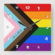 Horloge murale moderne avec drapeau arc-en-ciel Progress avec toutes les couleurs de la Fierté et facilement personnalisées texte / nom "One Love". Le texte peut également être supprimé, si vous le souhaitez.