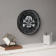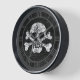 This clock has a skull and crossbones with a worn texture.