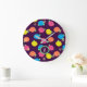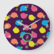 Des roses stylisés dans rose au néon, bleu lumineux, jaune, et le corail avec le feuille vert au néon sont ornés de paillettes à travers un arrière - plan mauve-foncé pour créer un motif floral d'amusement. Customisez le monogramme sur cette horloge pour lui faire uniquement vos propres.