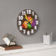 horloge avec des fruits sur arrière - plan brun, couleur arrière - plan derrière les chiffres peuvent être changés.