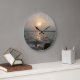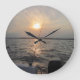 une horloge ronde avec un beau coucher du soleil au-dessus de la baie de chesapeake