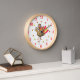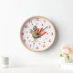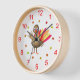 Une mignonne horloge colorée pour les enfants avec mon oeuvre numérique d'une petite dinde entourée de feuilles d'automne.