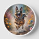 Un beau berger allemand parcourt des fleurs colorées sur ce design qui est parfait pour les éleveurs, les chenils ou les amoureux de les chiens.