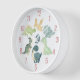 Ajoutez cette horloge adorable à la chambre ou à la nurserie de votre enfant. Elle présente de précieuses bébés dinosaures à l'aquarelle attendant avec impatience leur nouvel ami pour "éclore". Une combinaison simple et belle d'aquarelle de vert, bleu, orange, rouge et jaune.