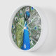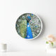 Élégante horloge murale avec chiffres blancs et présente l'image d'un Peacock bleu séduisant avec des plumes fantastiques colorées. Utilisez pour décorer un salon, une salle à manger, une chambre ou toute autre pièce.
