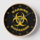 Icône d'avertissement de risque biologique jaune sur l'arrière - plan noir. Texte personnalisé.
