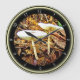Des champignons forestiers délicats au milieu de la litière de forêt brune frappent des accords émotionnels chauds dans cette horloge, des nombres jaunes doux sur l'arrière - plan noir