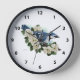 Horloges d'oiseaux avec Jay Bleu et art du bois de chien à fleurs.