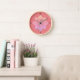 Cette jolie horloge murale ronde de 10 pouces a un médaillon pastel sur un arrière - plan de pêche. Il est encadré d'un beau bois clair. Les mains sont noires pour une bonne visibilité. Recherchez les autres objets de cette collection pour rassembler la pièce. Particulièrement agréable pour la chambre d'une fille. Par Oregon tile Maker Fay Jones Day.