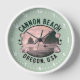 L'élégante horloge murale offre une vue rétro sur la plage de Cannon, en OR. Face à l'horloge blanche sur arrière - plan vert pastel