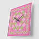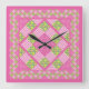 Horloge carré : Rose : Primroses, Pois, En vichy