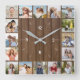 Horloge Carrée 20 Photo Collage Faux Brown clôture en bois