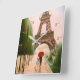 Tour Eiffel - Paris France, et Lovers under the red umbrella - peinture acrylique "À la tour Eiffel" & conçu avec cadrans horaires et minutes sur n'importe quelle horloge murale Zazzle. #MurHorloge #EiffelTower